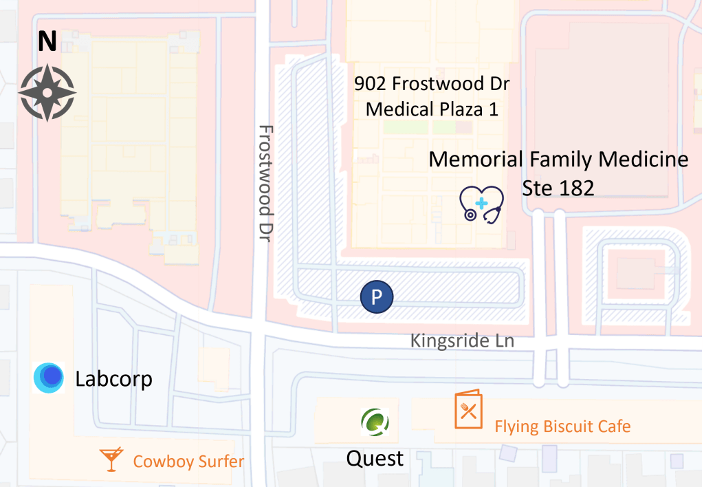 The practice is conveniently located in Medical Plaza One of the Memorial Hermann Memorial City Medical Center campus in Houston. Parking is available in the surface lot in front of the entrance.